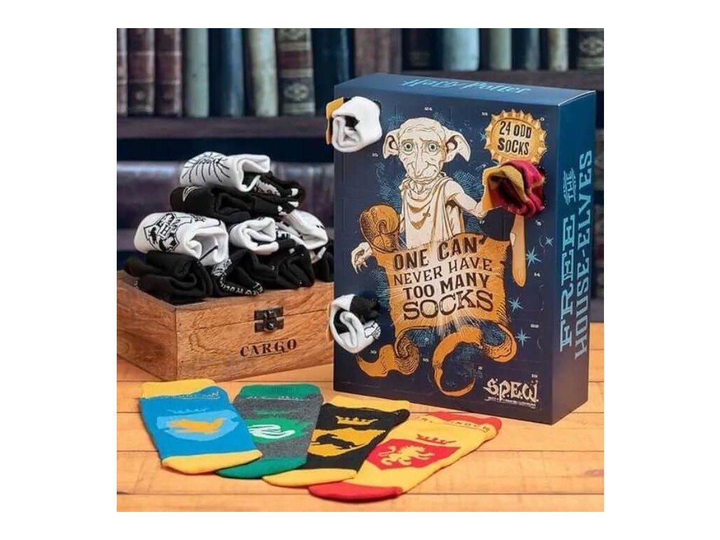 Tedd varázslatossá a karácsonyvárást a Harry Potter adventi naptár - Dobby segítségével. A gyönyörűen kidolgozott dobozban 24 egyedi zokni (12 pár) vár rád, amelyek Dobbyt, a Roxfortot, a Mágiaügyi Minisztériumot, ikonikus szimbólumokat és híres idézeteket ábrázolnak. Az univerzális unisex méret EU 36-41 gyermekeknek és felnőtteknek egyaránt megfelel, és minden nap új meglepetést tartogat a karácsonyi időszakban.