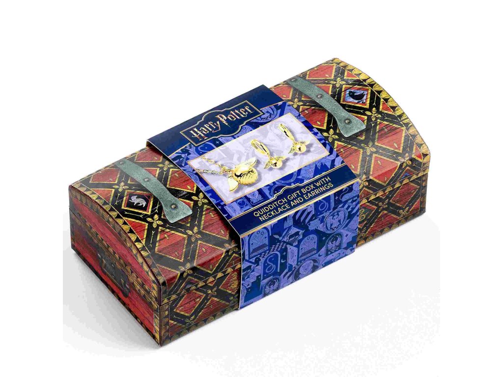 Limitált kiadású varázslatos ajándékcsomag a Harry Potter és a Titkok Kamrája film Kviddics ládája ihletésével. Ez az elegáns készlet egy nyakláncot és kecses karikafülbevalókat tartalmaz Arany Pisztráng motívummal, amelyek minden rajongót elbűvölnek a varázslatos világból.