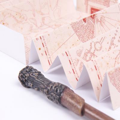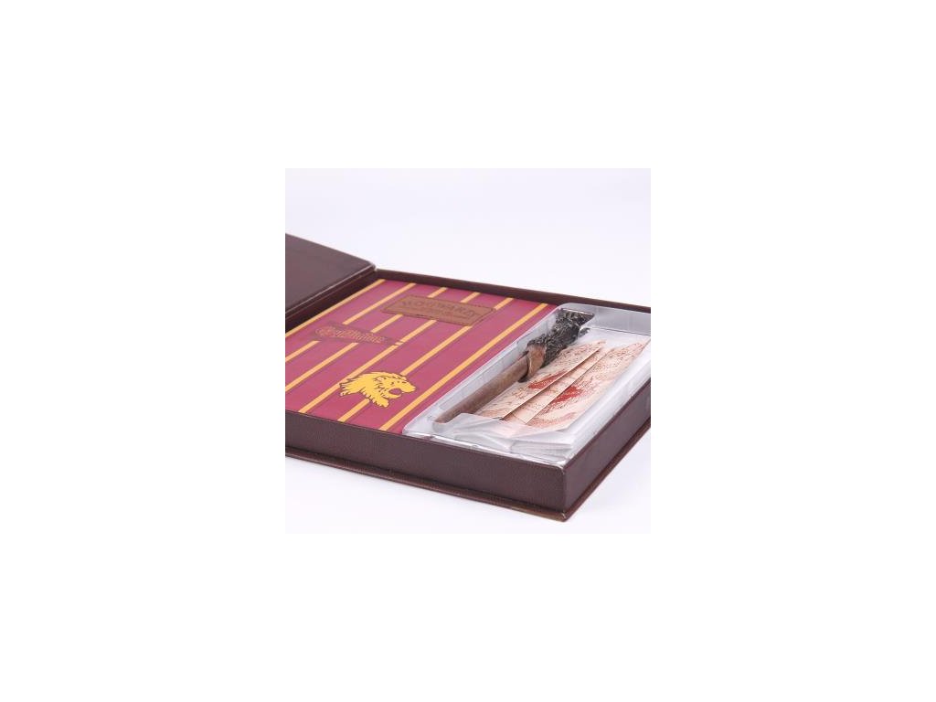 A kinyitható, bőröndcske formájú doboz nemcsak ajándékcsomagolásként szolgál, hanem gyönyörű gyűjtői darab is. Belül egy jegyzetfüzetet talál, amely ideális feljegyzésekhez, iskolai jegyzetekhez vagy naplóíráshoz, egy tematikus, pálca formájú tollat, valamint a híres Tekergők Térképét, amely az egész szettnek autentikus Harry Potter-hangulatot kölcsönöz.