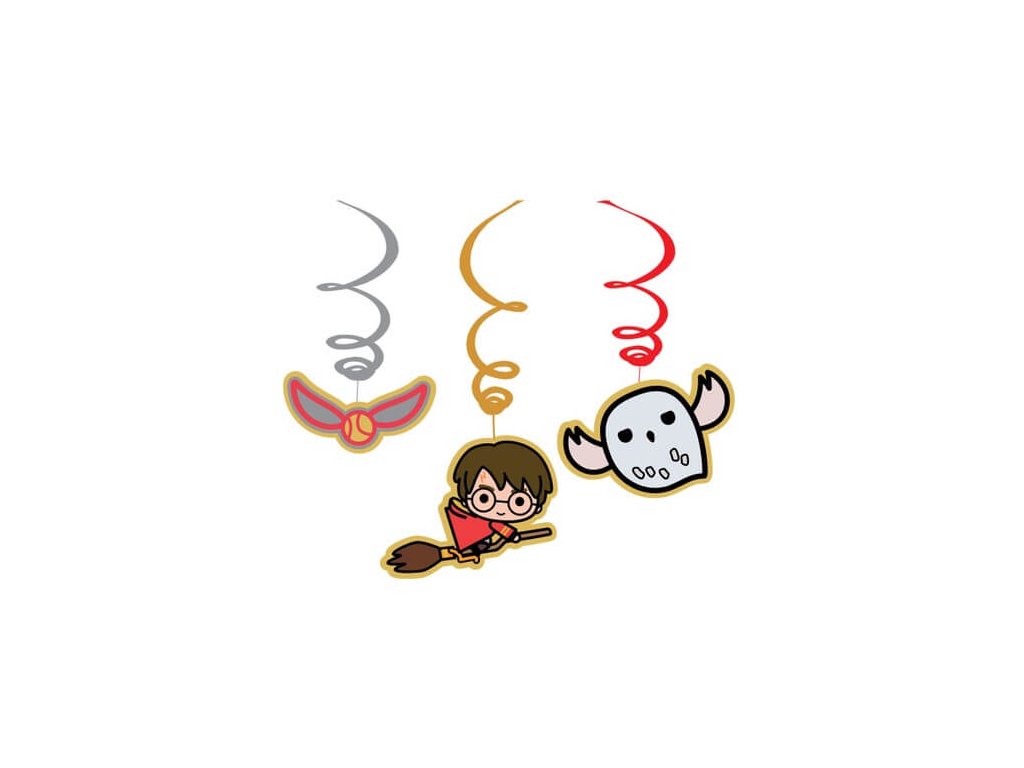 Varázsold felejthetetlenné a Harry Potter tematikájú bulit ezekkel a lenyűgöző függő dekorációkkal! A varázslatos díszek szettje 6 darab papír dekorációt tartalmaz Harry Potter motívumokkal: 2 db Harry Potter seprűn repülve, 2 db Aranycikes és 2 db Hedvig bagoly. A dekorációk papírból készültek, méretük 60 cm.