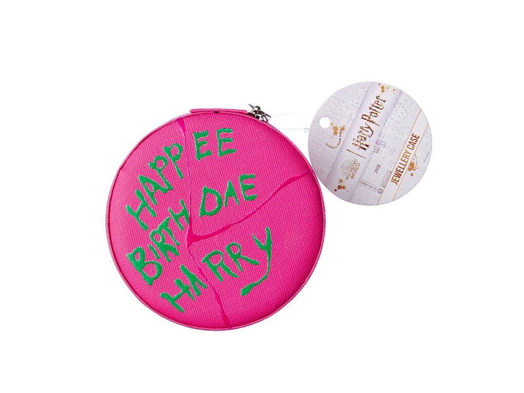 Stílusos Harry Potter ékszerdoboz minden kis és nagy varázslónő és varázsló számára. Az ékszerdoboz a tortát mintázza, amelyet Harry 11. születésnapjára kapott Hagridtól. A doboz tetején a "Happee Birthdae" felirat található, ugyanaz, mint a tortán. Ez a limitált kiadású "Happee Birthdae" termék. Az ékszerdoboz műbőrből készült és cipzárral záródik.