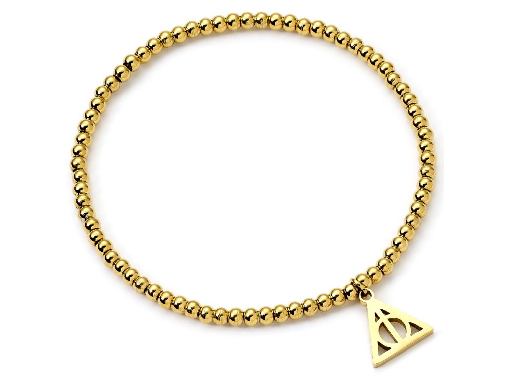 Ez a Harry Potter gyöngy karkötő a Halál Ereklyéi ikonikus jelképét viseli magán. Az arany színű gyöngyök és a karakteres medál különleges, mély jelentéssel bíró ékszert alkotnak.