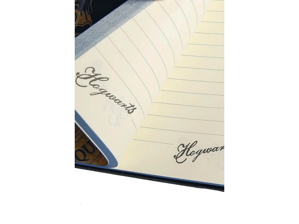 A jegyzetfüzet kemény műbőr borítással rendelkezik, elején holló motívummal és a nagy R betűvel (Ravenclaw - Hollóhát). Kék gumipánttal zárható és kék könyvjelző szalaggal van ellátva. Ideális varázslatos jegyzetek, tervek vagy új varázsigék feljegyzésére. Az oldalak kék szegélye stílusos megjelenést kölcsönöz. Minőségi papírból készült, így pergamentollal is írható. A5-ös formátumú, 100 vonalas oldallal és tolltartó hurokkal rendelkezik. Kiváló ajándék minden Harry Potter rajongónak, a Roxfort házait megidéző kollekció része. Hivatalosan licencelt termék.