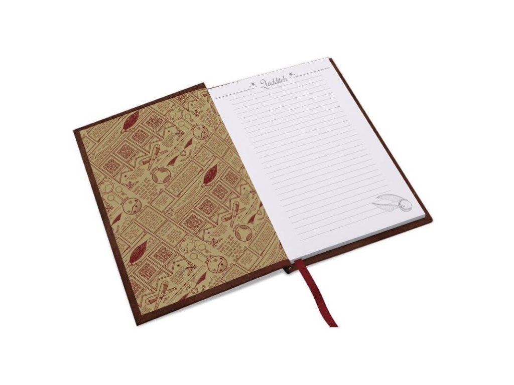 Harry Potter varázslatos jegyzetfüzete Kviddics motívummal ideális nemcsak a Kviddics eredmények vagy taktikák rögzítésére, hanem új varázslatok, elixír receptek és sok más feljegyzésére is! Ezt a jegyzetfüzetet használta Harry, mint a Griffendél legfiatalabb kapusa, mindig kéznél tartva. A jegyzetfüzet kemény kötésű, mesterséges bőrből készült borítóval.
