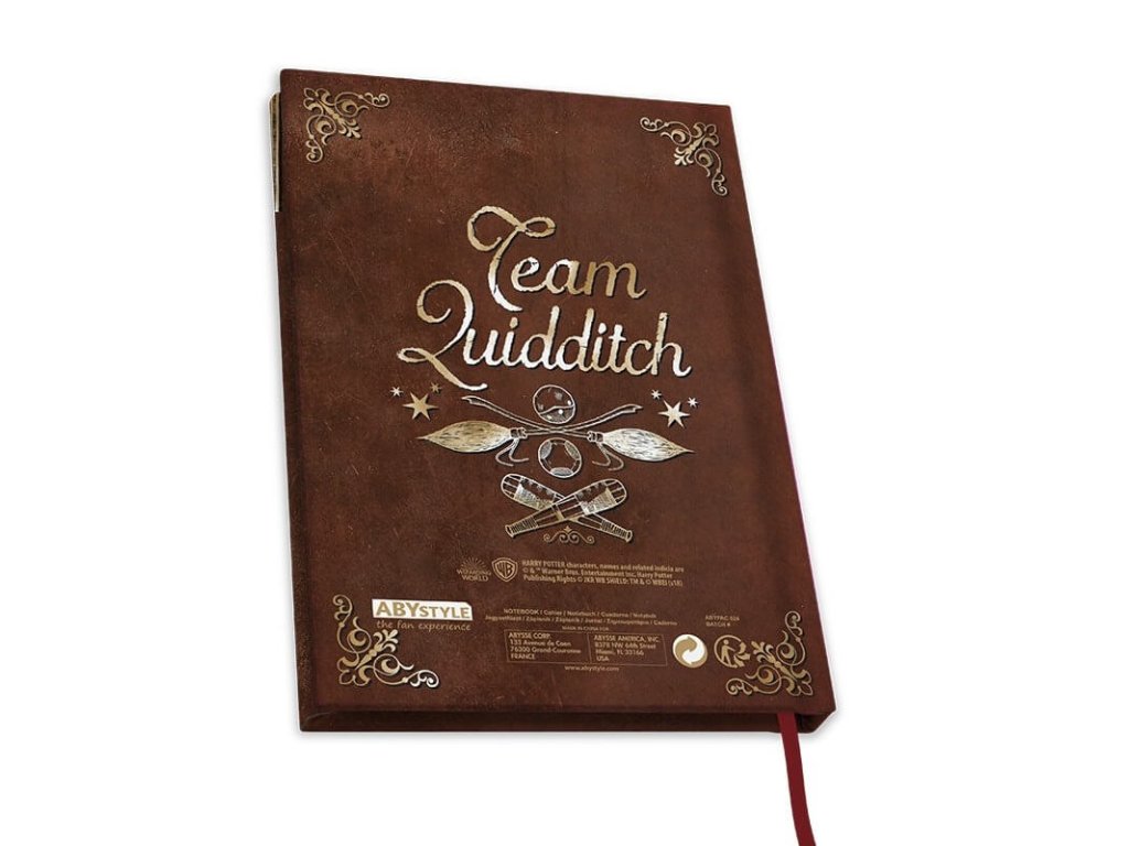 A borítóján a Kviddics karikák, az Aranycikesz és a Griffendél, Hugrabug, Hollóhát és Mardekár zászlói láthatók. Középen arany betűkkel az angol "Quidditch at Hogwarts", vagyis Kviddics Roxfortban felirat olvasható. A hátoldalon az angol "Team Quidditch" (Kviddics Csapat) felirat, Kviddics labdák (Camrál és ütők) motívumokkal, seprűkkel és ütőkkel. A jegyzetfüzet 180 vonalas oldallal rendelkezik, és praktikus könyvjelző szalaggal, hogy mindig az aktuális oldalt nyithasd fel. Ez a jegyzetfüzet remek ajándék minden Harry Potter és Kviddics rajongó számára. A Harry Potter jegyzetfüzet Kviddics Premium hivatalosan licencelt termék.