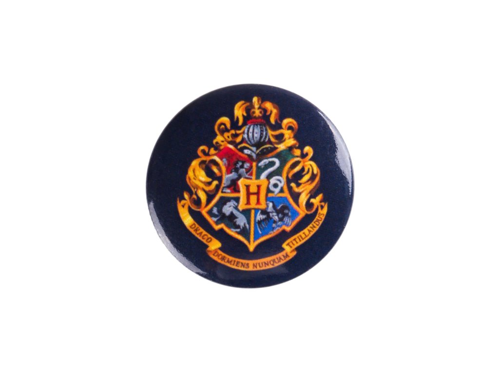 A készlet 5 hivatalosan licencelt Harry Potter jelvényt tartalmaz ikonikus motívumokkal: a roxforti címer, Hollóhát kollégium, Dumbledore Seregei, a Halál ereklyéi szimbólum és a Mágiaügyi Minisztérium. Négy jelvény átmérője 2,5 cm, egy nagyobb jelvény átmérője 3,8 cm.