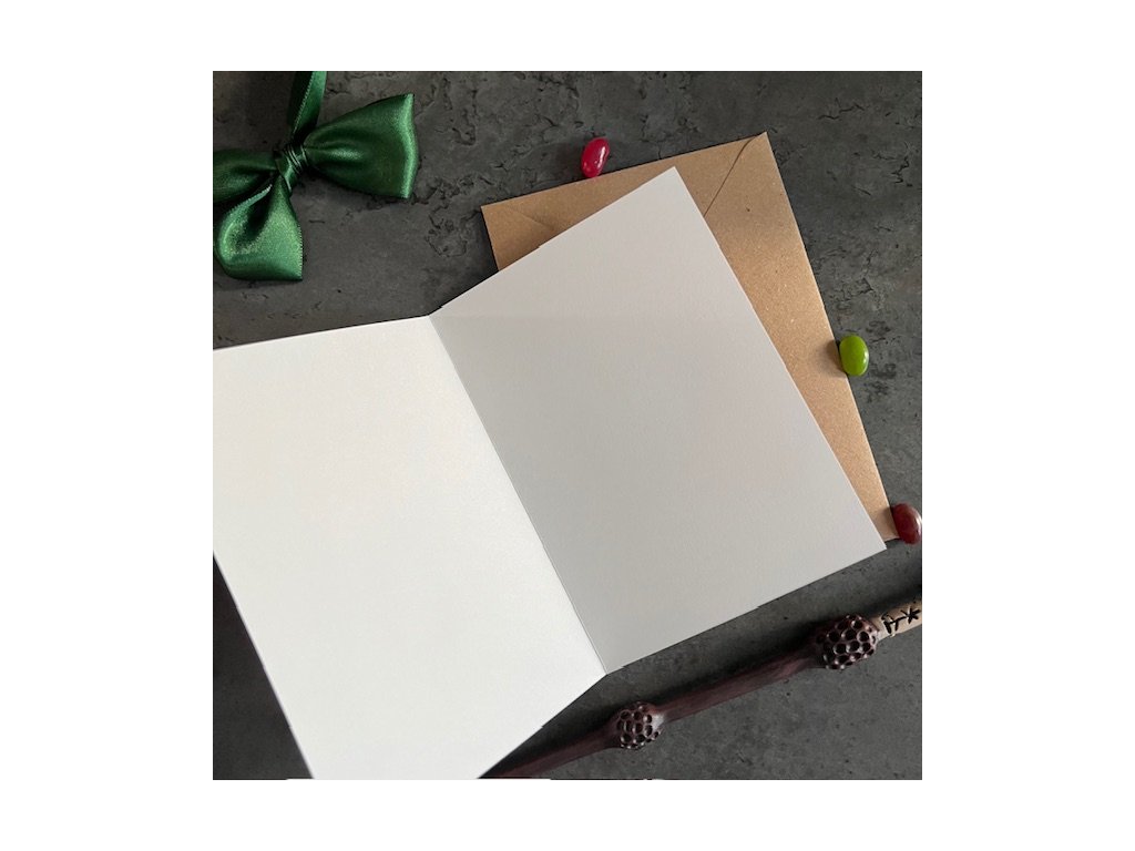 Lepje meg szeretteit egy karácsonyi üdvözlőkártyával hóbagoly motívummal! A 15 x 10,5 cm-es kártya minőségi papírból készült, és borítékkal érkezik, így azonnal elküldhető. Vásárolhat hozzá eredeti roxforti pecsétet, amely varázslatos hangulatot ad üzenetének.