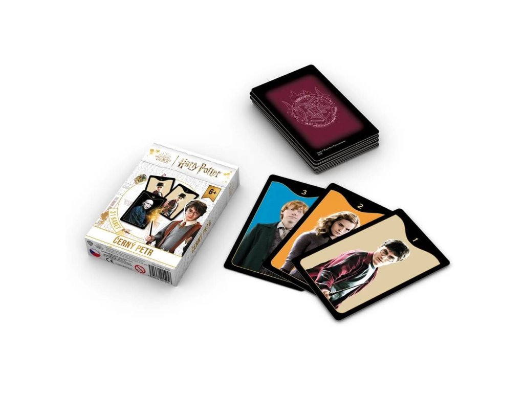 A népszerű Fekete Péter kártyajáték most új, varázslatos köntösben! Játssz Fekete Pétert Harry Potter szereplőivel. Minden kártyán egy J.K. Rowling által alkotott karakter látható, például Ginny Weasley, Hermione Granger, Harry és mások. A Fekete Pétert Lord Voldemort testesíti meg. A Harry Potter Fekete Péter játék rengeteg szórakozást kínál! Ez a hivatalosan licencelt termék biztosan örömet szerez minden varázslósaga rajongójának!