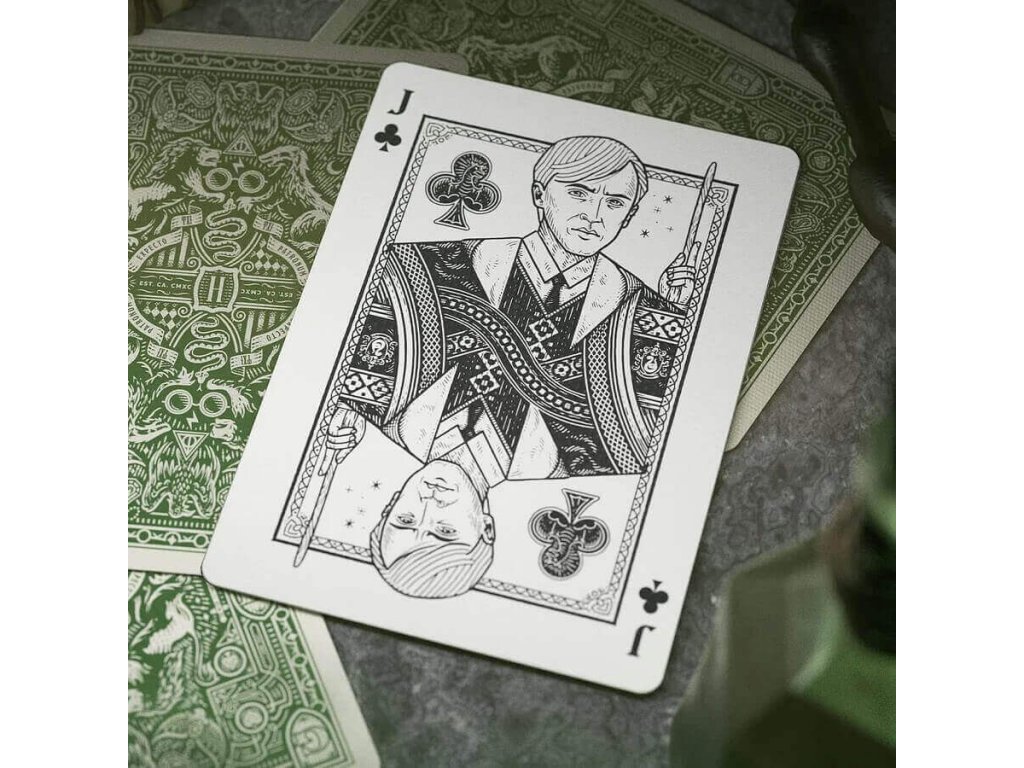 A csomagban 54 játékkártyát találsz a Harry Potter varázslatos világának motívumaival, beleértve két jokerkártyát Dobby és Hagrid formájában. A kártyák hátoldala a Mardekár színeiben és motívumaiban készült, míg az előlap karaktereket ábrázol, például Draco Malfoy-t vagy Severus Snape-t és másokat. A Harry Potter kártyák egy strapabíró zöld dobozban vannak, Mardekár kollégium motívumaival. A Harry Potter Mardekár kártyapakli hivatalosan licencelt termék.