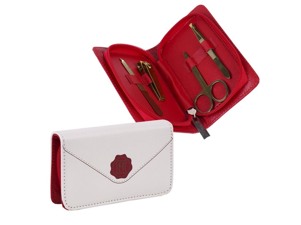 A szett manikűr ollót, pinzettát, körömcsipeszt, körömreszelőt és egy eredeti levél Hogwartsból grafikával díszített táskát tartalmaz. A táska mérete 12 × 9 × 2 cm, így ideális útitárs vagy táska kellék. Hivatalosan licencelt termék, amely garantálja a minőséget és hitelességet. Ajándékozzon egyedi darabot a Harry Potter világából szeretteinek!