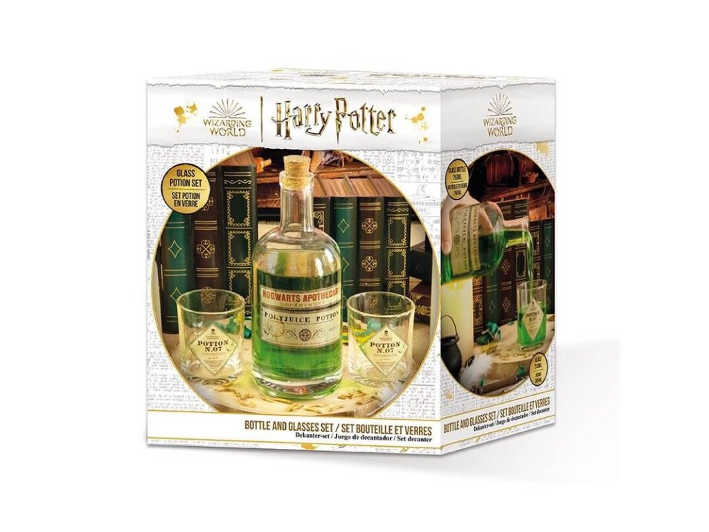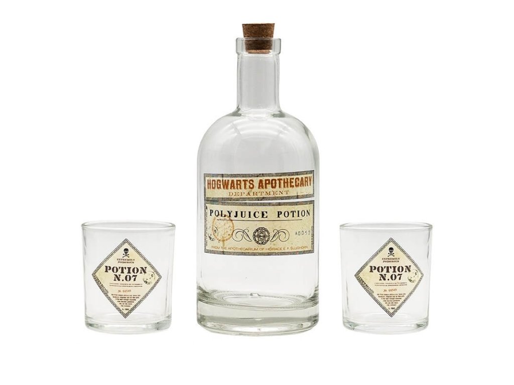 Ez a Harry Potter pohár- és palack szett a varázslatos főzetek világát hozza el közvetlenül az asztalára. A dizájn olyan ikonikus italokra utal, mint a Polyjuice Potion, és tökéletesen visszaadja a Roxfort bájitaltan óráinak hangulatát.