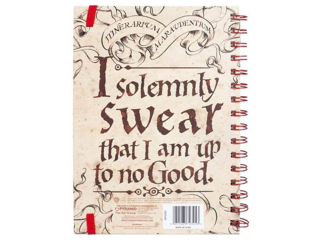 A Tekergők Térképe spirálfüzet vonalazott lapokkal és tartós spirálkötéssel készült. A5-ös (21x14,8 cm) formátumú, és praktikus gumipánttal zárható. Az előlapon a híres Tekergők Térképe motívum látható, míg a hátoldalon az ikonikus angol felirat: "I solemnly swear that I am up to no Good", vagyis „Ünnepélyesen esküszöm, hogy minden rosszaságra készen állok”. A Harry Potter Tekergők Térképe spirálfüzet hivatalosan licencelt termék, és nagyszerű ajándék minden boszorkány és varázsló számára.