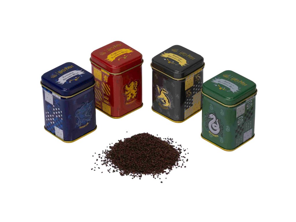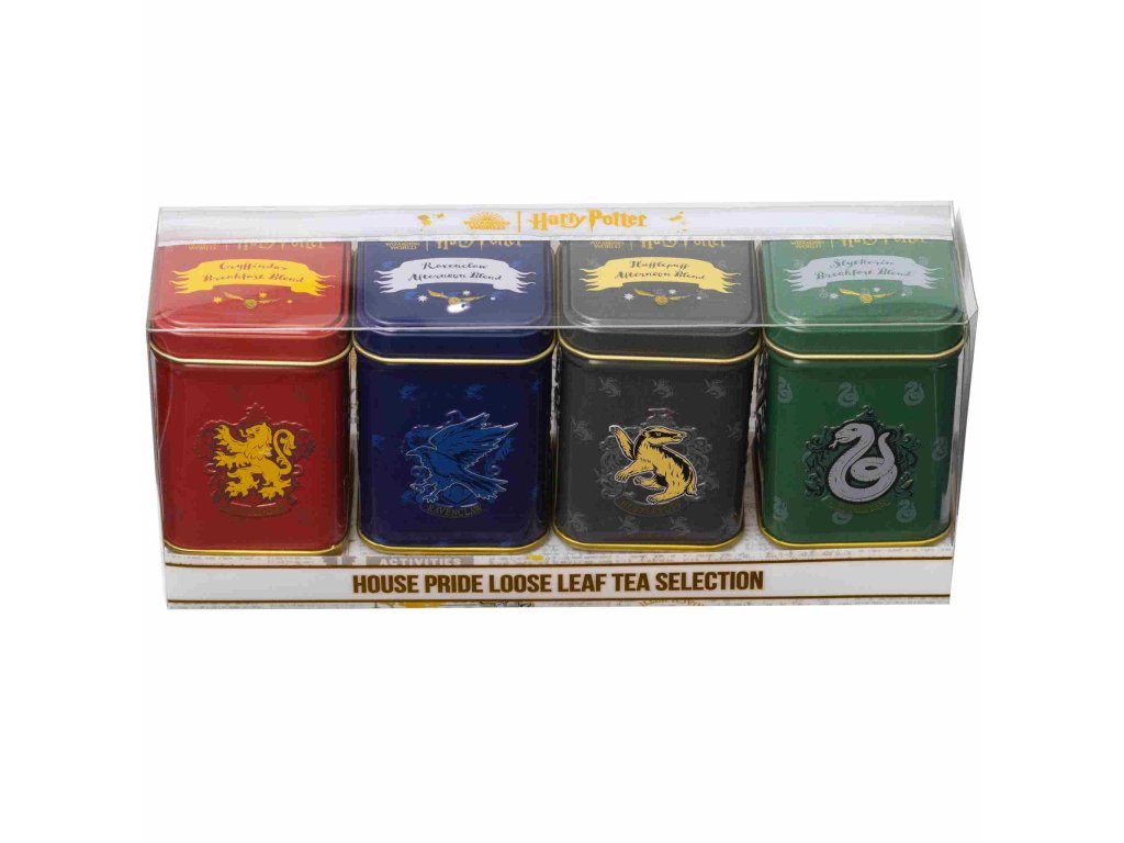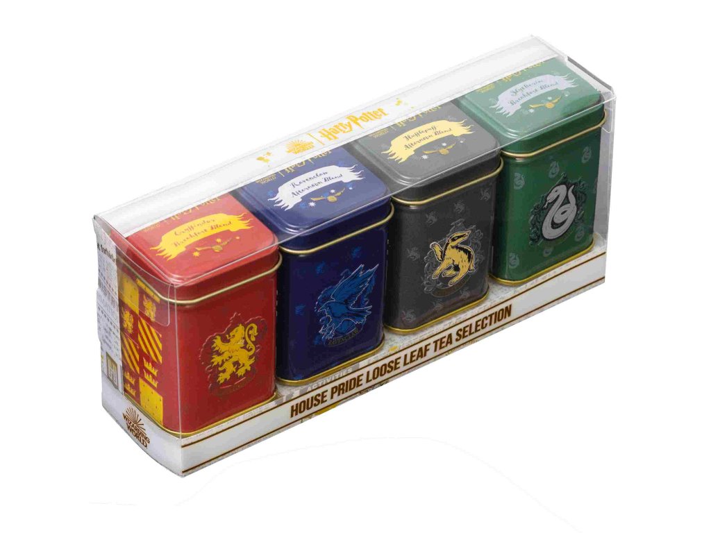 Négy roxforti ház – Griffendél, Mardekár, Hollóhát és Hugrabug – teái elegáns dobozokban egyetlen ajándékcsomagban. A csomagban 4×25 g prémium szálas fekete tea Assam & Nilgiri található, English Breakfast és English Afternoon keverékekben – tökéletes választás minden Harry Potter rajongónak és teakedvelőnek.
