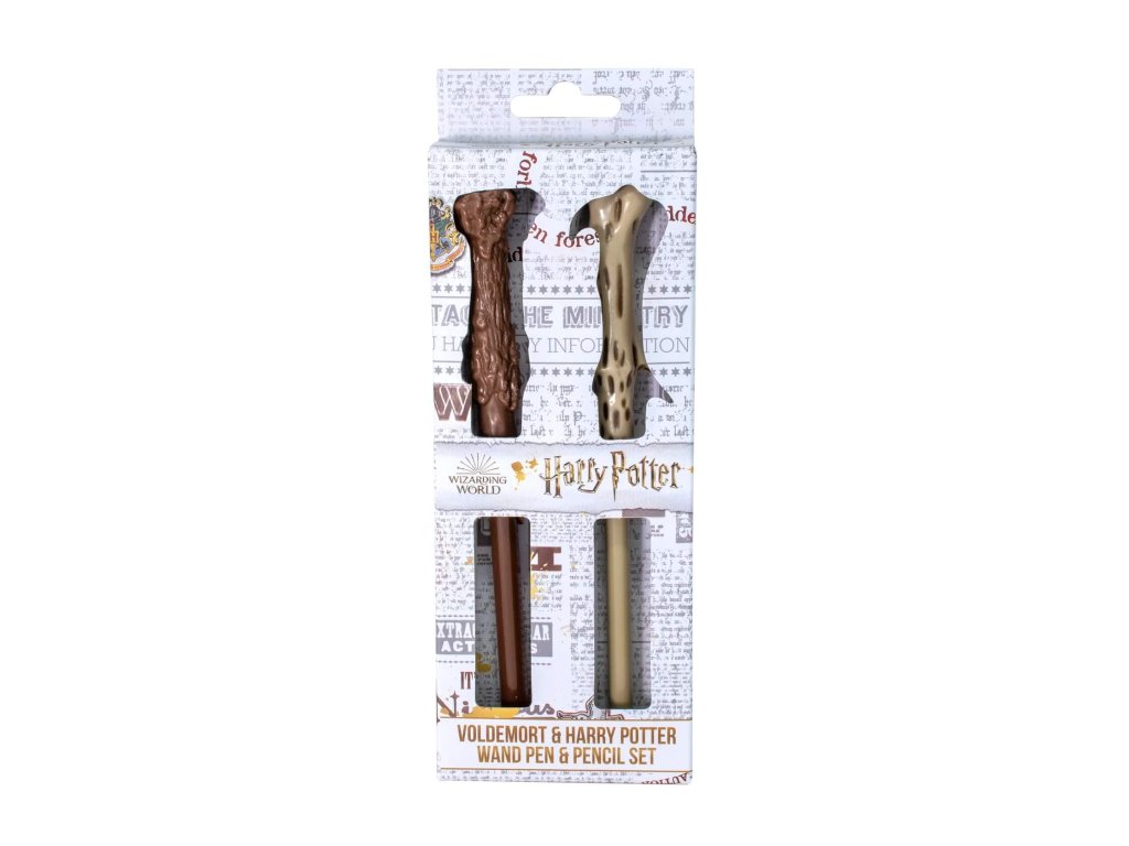 - Készlet Voldemort Nagyúr és Harry Potter varázspálcája formájú tollal és ceruzával