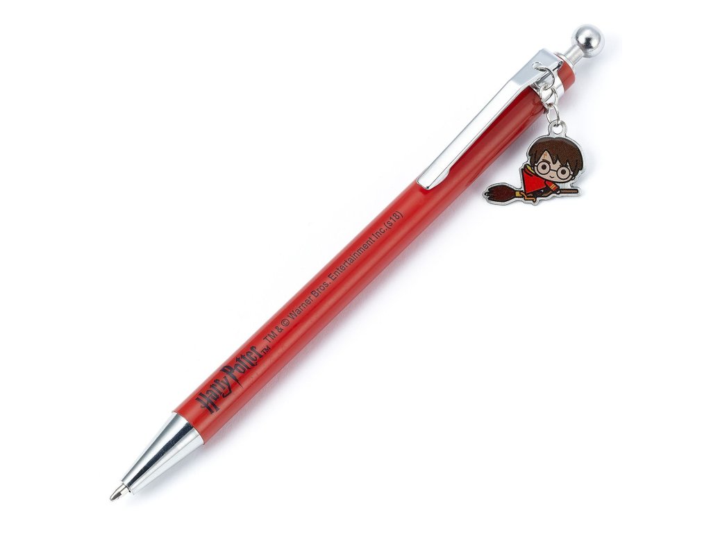 Piros toll Harry Potter seprűn repülő medáljával. Kitalálod, hogy a Villám vagy a Nimbus 2000 seprűn repül? Ez a toll tökéletes ajándék minden J.K. Rowling varázsvilágának rajongójának. A Harry Potter toll medáljával hivatalosan licencelt termék. A toll fekete tintával ír, hossza körülbelül 15 cm.