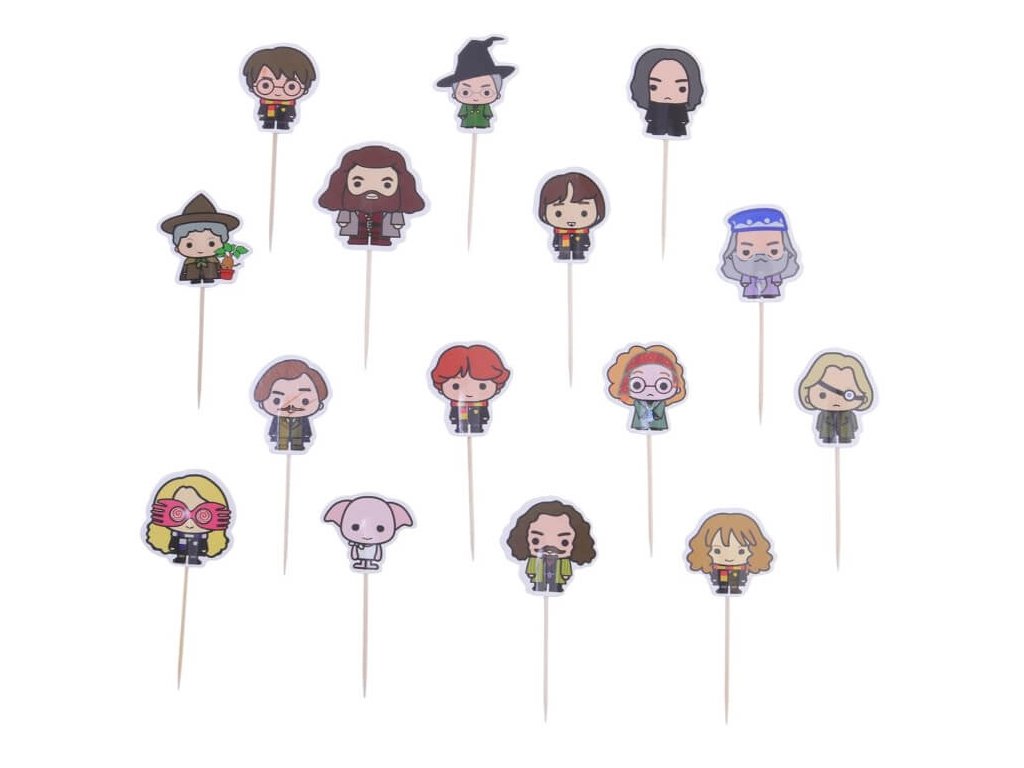 Készíts felejthetetlen süteményeket Harry Potter stílusában! Ozdítsd meg muffinjaidat, tortáidat, cupcake-jeidet és más süteményeidet a kedvenc pozitív szereplőkkel Harry Potterből! Ez a 15 db-os pálcákészlet ismert tanárokat, mint Albus Dumbledore, Minerva McGalagony, és diákokat, mint Harry, Ron, Hermione, Neville, Luna Lovegood és másokat tartalmaz!