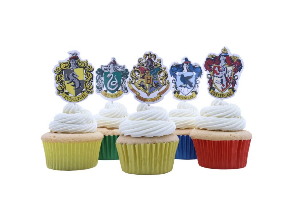 - Tortadísz pálcák muffinhoz, tortához, süteményhez, cupcake-hez és másokhoz a Bradavici házak és Roxfort címer motívumaival