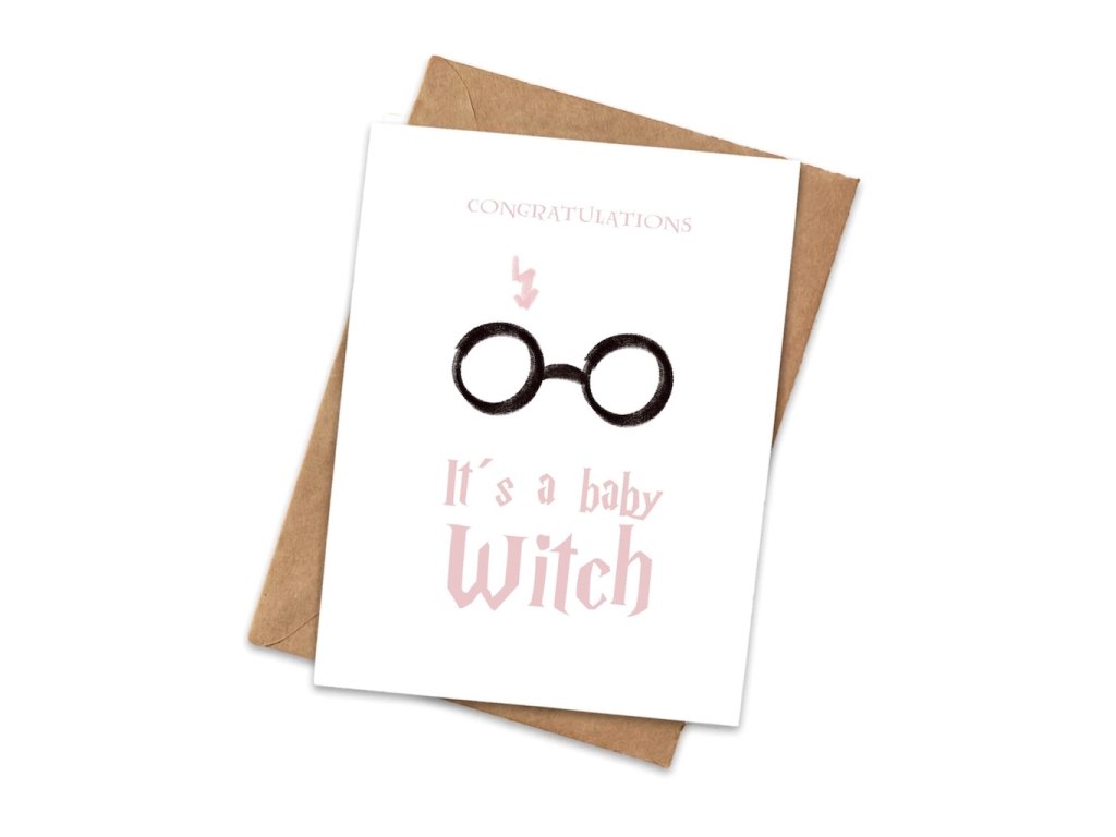 Eredeti üdvözlőkártya egy kis varázslónő születésére. Tökéletes ajándék minden varázsvilág rajongójának.