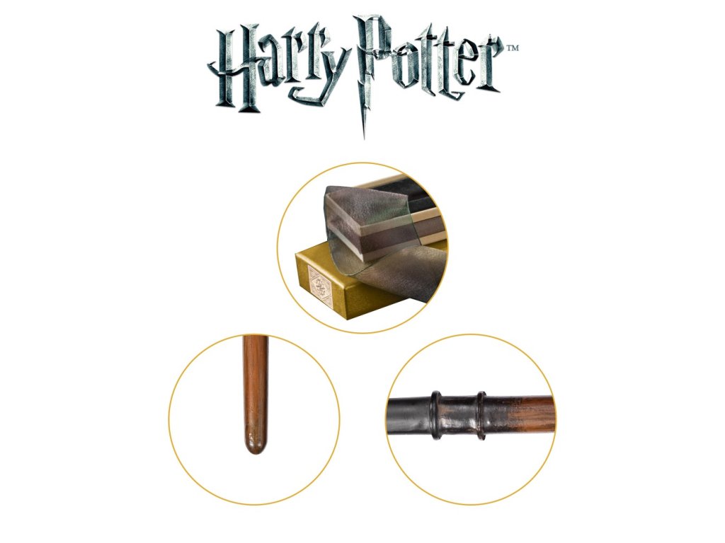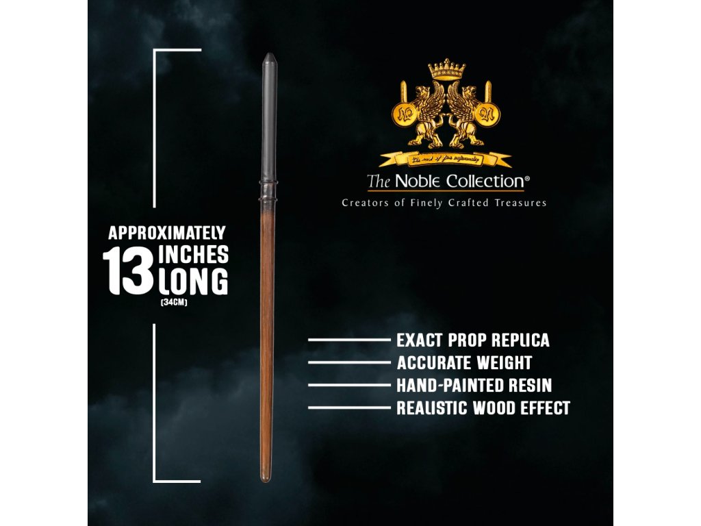 Ezt a gyűjthető varázspálcát a The Noble Collection készítette — a világ legelismertebb filmes replika gyártója, a Harry Potter kollekció kizárólagos Warner Bros. licenszével. Míg a piacon lévő pálcák többsége unalmas műanyag csomagolásban érkezik, ez a gyűjtői kiadás az eredeti Ollivander doboz replikájában kapható — ugyanolyanban, amely a filmekben a pálcaválasztás sorsdöntő pillanatát szimbolizálja minden varázsló életében. A pálca 38,1 cm hosszú, kiváló minőségű gyantából készül és a legapróbb részletig kézzel festett.