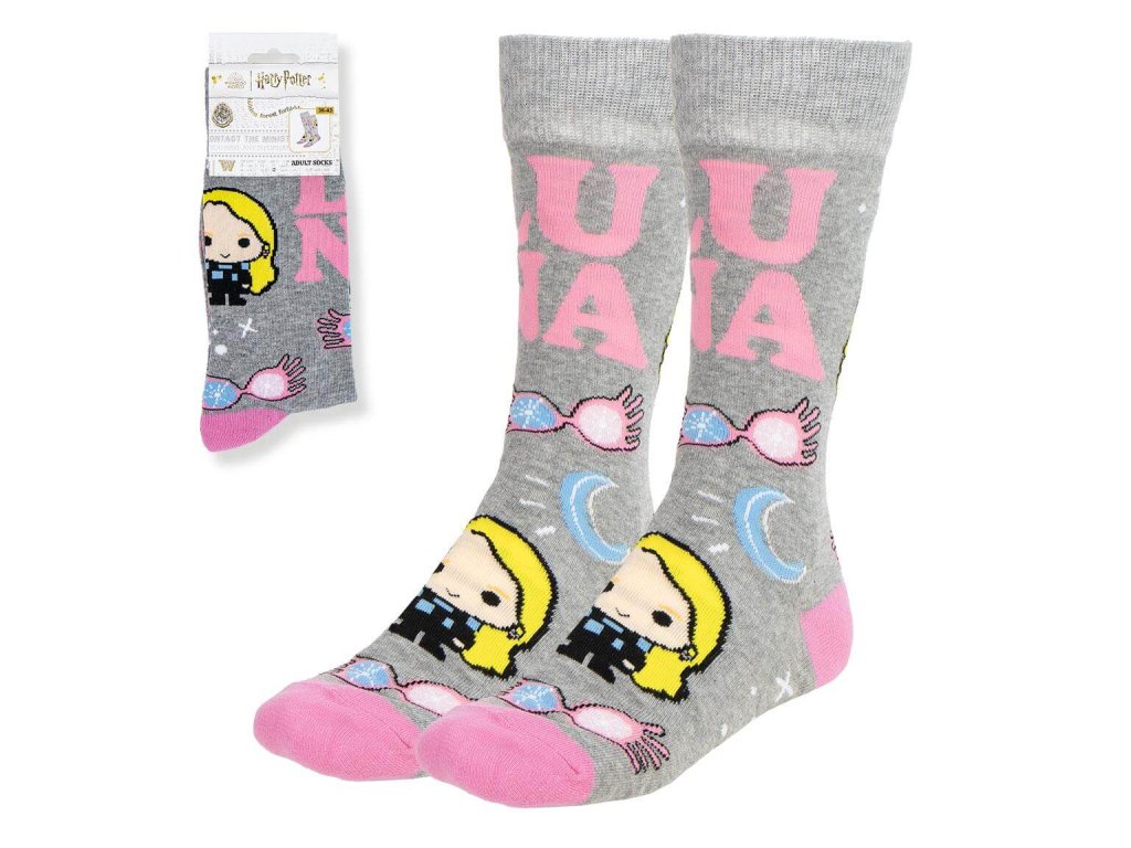 Lepje meg szeretteit egy pár meleg, puha Harry Potter zoknival, Luna Lovegood varázslatos mintájával! A zoknikon Luna híres Szellőszemüvege és maga Luna is szerepel. A gyönyörű szürke-rózsaszín kivitel minden kis és nagy boszorkány szívét megdobogtatja - tökéletes ajándék Luna, Hollóhát és Harry Potter rajongóknak.
